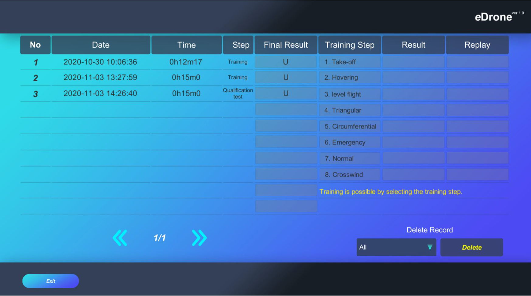 다양한 비행 모드: 훈련, 자격시험, 자유비행등의 비행모드