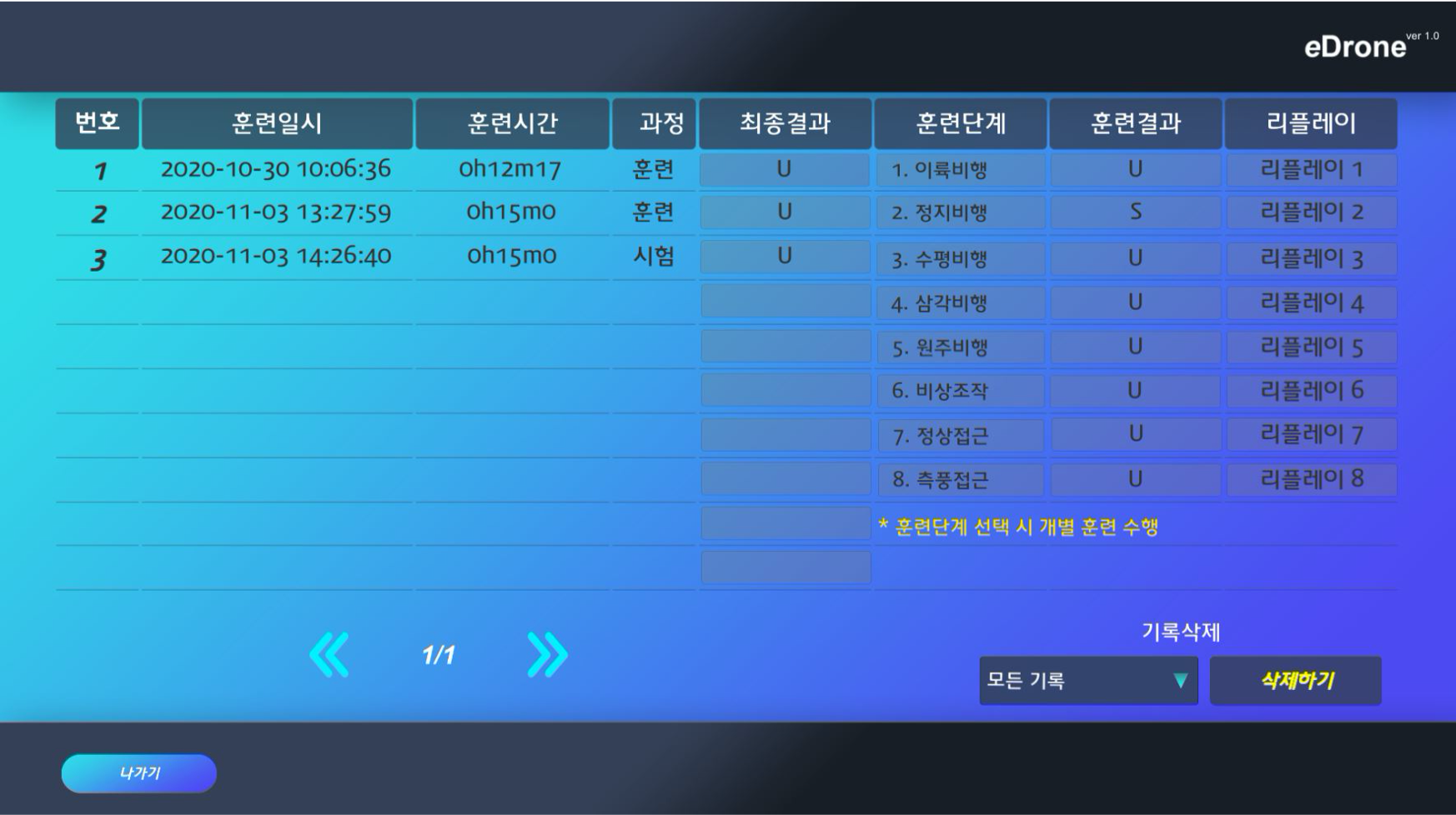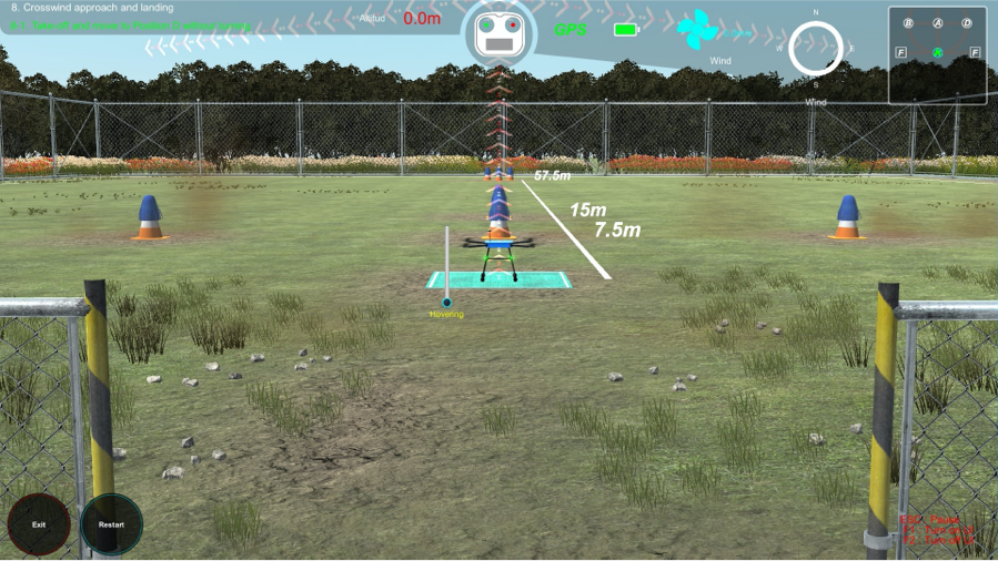디브리핑 기능(시간기록, 다시보기 등)이 있는 8개의 지정비행기로 구성된 드론조종사 자격시험