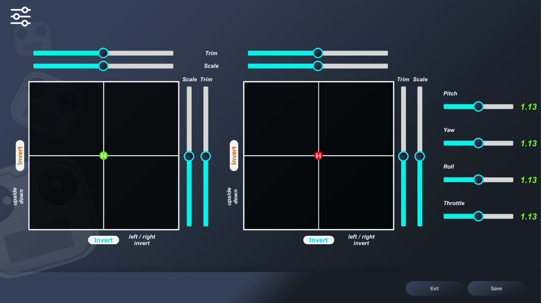 다양한 드론 및 조종기에 조종감을 맞추기 위한 조종기 감도 조절 기능