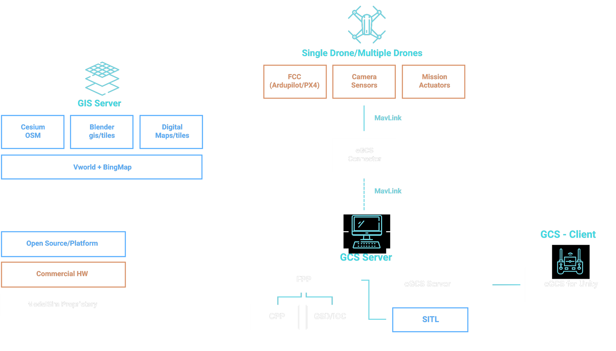 - Off-line mode for security reasons (the present GCS uses web-based GIS information)