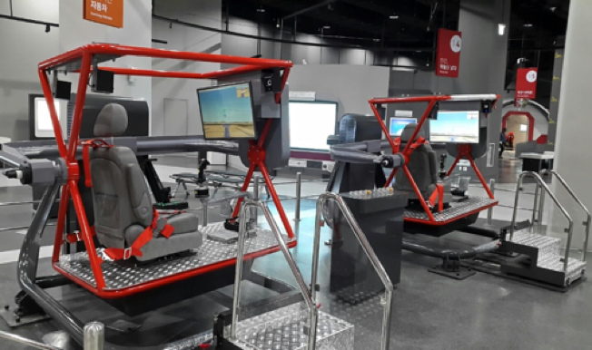 Various museum simulators have been developed by ModelSim, which include gimbal-motion airplane simulators, hang-glider simulators, ATC simulators, automotive simulators, 4D theatre ride simulators, and so on. Customized ride or interactive simulators can be developed at very low costs. Previous customers include Guacheon/ Busan National Science Museums, Yongsan National Warfare Museum, and Daejeon Traffic Safety Museum.
